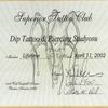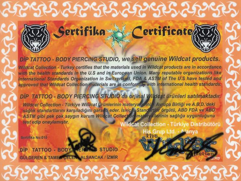 Sanatçılar ve Sertifikalar Tamer ÇELEN Tattoo Artist, Piercer, Make-up 1974 Kasım-Almanya doğumludur. Felsefe ve iktisat okumuş, sonunda insan kaynakları uzmanı olarak Dokuz Eylül Üniversitesinden (ÇEKO) mezun olmuştur. İlgisini çeken resim bölümüne okullu olarak devam edemese de, alaylı olarak resimle ilgilenmiştir. Daha sonra İnsan derisini tuval seçip, kalıcı eserler vermeye Dip Tattoo Piercing Stüdyosu'nu açarak devam etmiştir. 2007 - 2009 yıllarında, Türkiyede ilki 2006 yılında kurulan Dövme Derneğinin Ege Bölge kurucu başkanlığını yapmıştır. Gülderen ÇELEN Piercer 1963 Aralık Manisa doğumludur. Düz liseden mezun olduktan sonra içindeki sanatçı ruhu devlet tiyatrosuna girerek tatmin etmiştir. Sonrasında alaylı olarak tiyatro ile ilgilenmiştir.